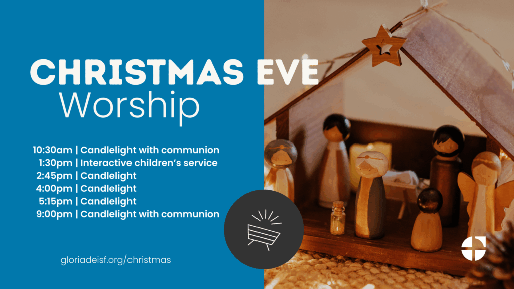 Join us for Christmas Eve at Gloria Dei on Saturday, December 23 and Sunday, December 24. Find worship times and information about everything happening this Advent and Christmas season